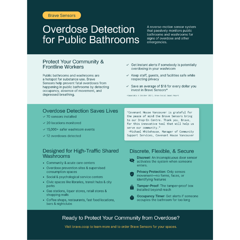 "Covenant House Vancouver is grateful for the peace of mind the Brave Sensors bring to our Drop-In Centre. Thank you, Brave, for this innovative tool that will help us serve our community."