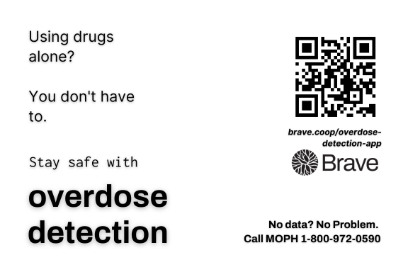 Public health groups and harm reduction service providers use Brave Overdose Detection System to provide anonymous remote supervision for people using drugs alone. Detect overdoses before they’re fatal so you can activate life-saving community or emergency response.
